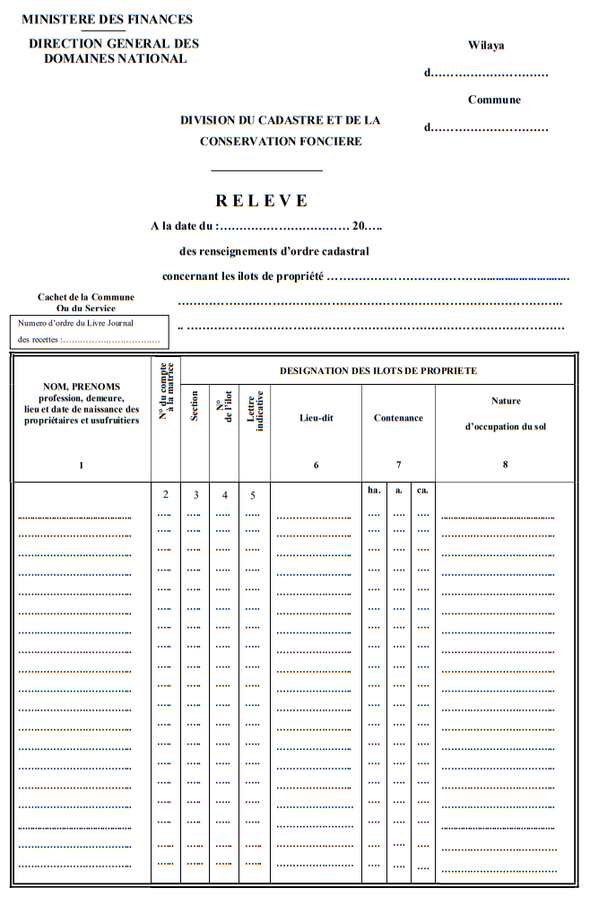 Relevé des renseignements d'ordre cadastral concernant les ilots de propriété |